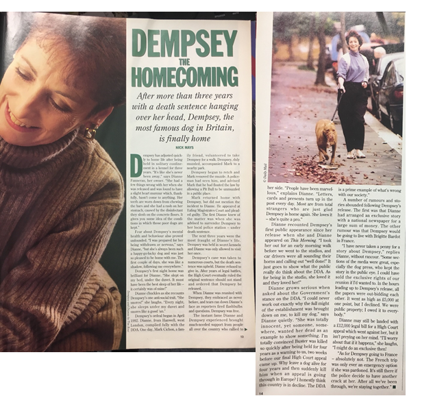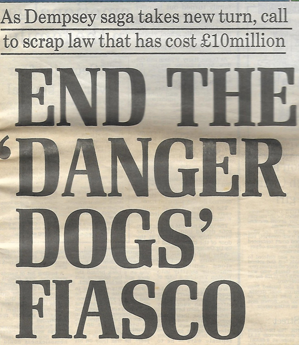 The coverage of the press on the Dempsey case continued….and it continued to be very positive. This led to an incredible front page story in the Daily Mail together with a damning opinion comment. The tide appeared to have turned and many in the press were now on side. It seemed that it might be possible to get the law changed. But would it actually happen and would we be able to save Dempsey from destruction?