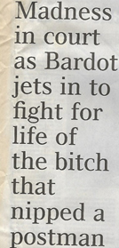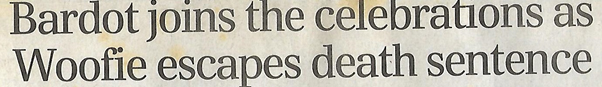 The case became a cause celebre in Scotland. I once again enlisted the support of Brigitte Bardot and the various newspapers obtained quotes from several other well known celebrities (including Whoopi Goldberg…)