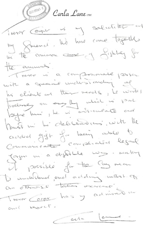 Glowing reference from Carla Lane OBE. I wish I could remember why Carla wrote this letter! She once described me as ‘the bone in a waist coat’……That is marginally better than other people’s description of me : ‘Frankie Howerd’s lovechild’, ‘it was like watching Julian Clary in a suit’, ‘he reminded me of a childhood trip to the Bradford Alhambra when I saw Ken Dodd’……..